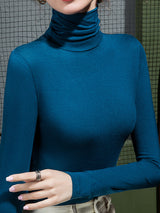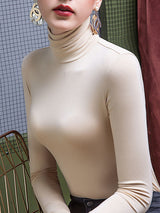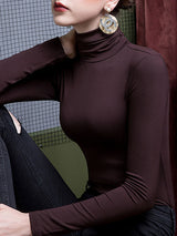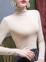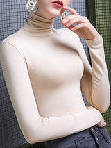 Long Sleeves Plus Size Solid Color Split-Joint High Neck T-Shirts