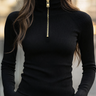 Long Sleeves Skinny Solid Color Zipper High Neck Pullovers