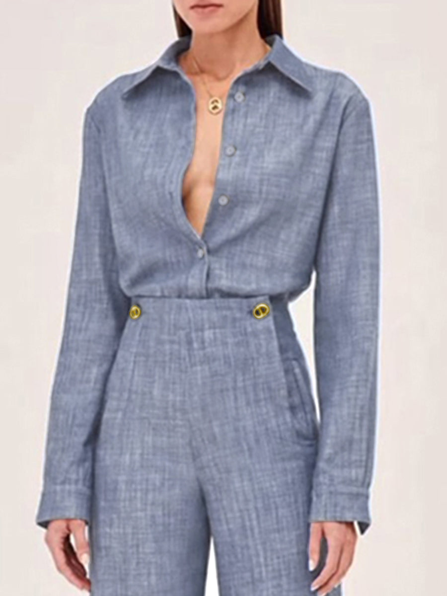 Long Sleeves Solid Color Split-Joint Lapel Blouses&Shirts Tops