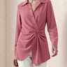 Long Sleeves Wrap Asymmetric Knot Pleated Lapel Blouses&Shirts Tops