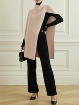 Loose Asymmetric Solid Color Split-Joint High Neck Sweater Tops