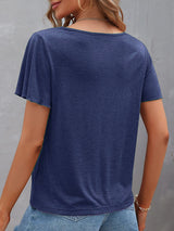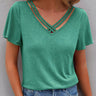 Loose Plus Size Hollow Solid Color Split-Joint V-Neck T-Shirts Tops