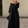 Loose Puff Sleeves Elasticity Pleated Solid Color Off-The-Shoulder Maxi Dresses