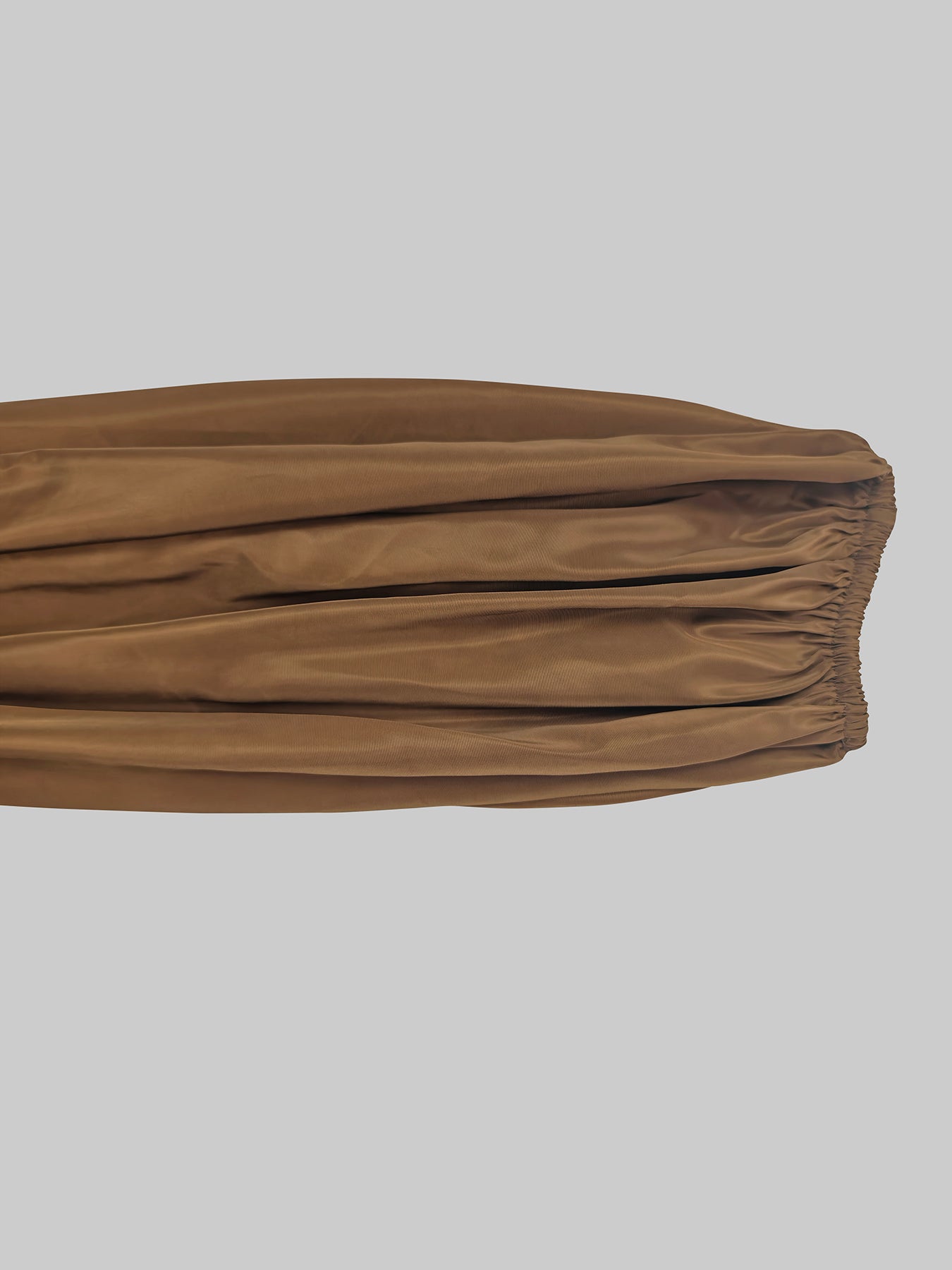 Loose Puff Sleeves Falbala Pleated Solid Color Off-The-Shoulder Maxi Dresses