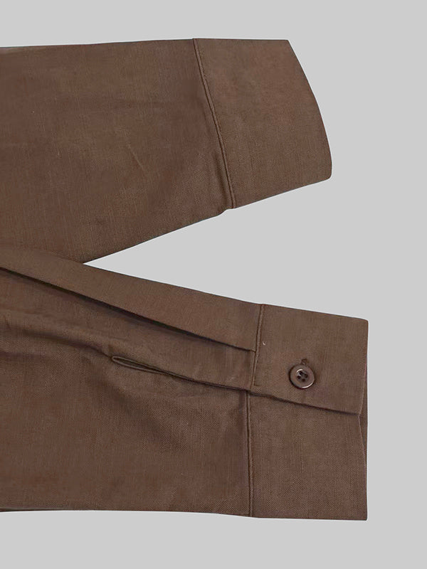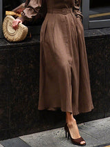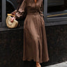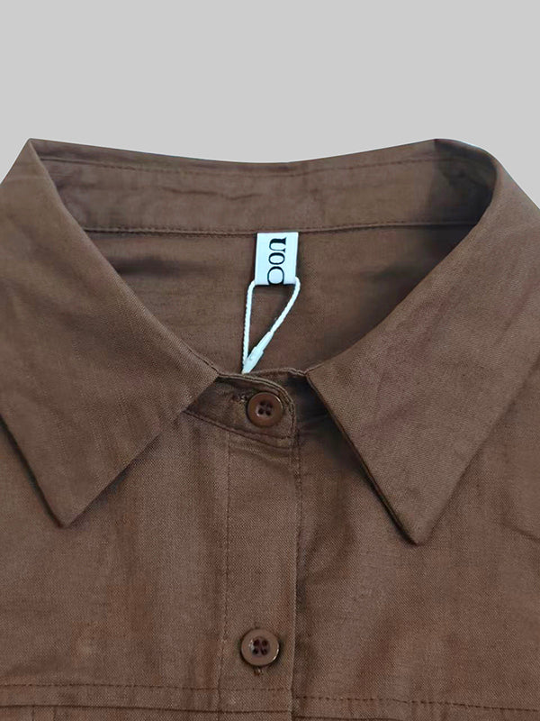 Loose Puff Sleeves Pleated Solid Color Split-Joint Lapel Maxi Dresses Shirt Dress