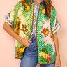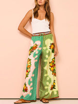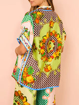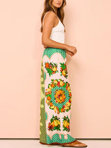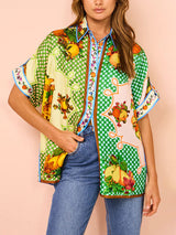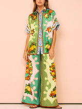 Loose Short Sleeves Contrast Color Floral Printed Lapel Shirt Top&Pants Two Pieces Set
