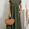 Loose Short Sleeves Pleated Solid Color Round-Neck Midi Dresses