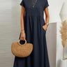 Loose Short Sleeves Pleated Solid Color Round-Neck Midi Dresses