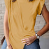 Loose Sleeveless Asymmetric Pleated Solid Color Split-Joint Mock Neck T-Shirts Tops