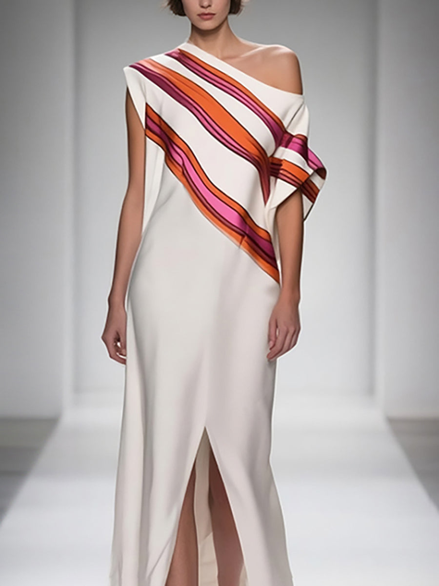 Loose Sleeveless Asymmetric Printed Split-Front One-Shoulder Maxi Dresses