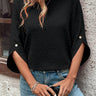 Loose Three-Quarter Sleeves Hollow Jacquard Split-Joint Round-Neck T-Shirts
