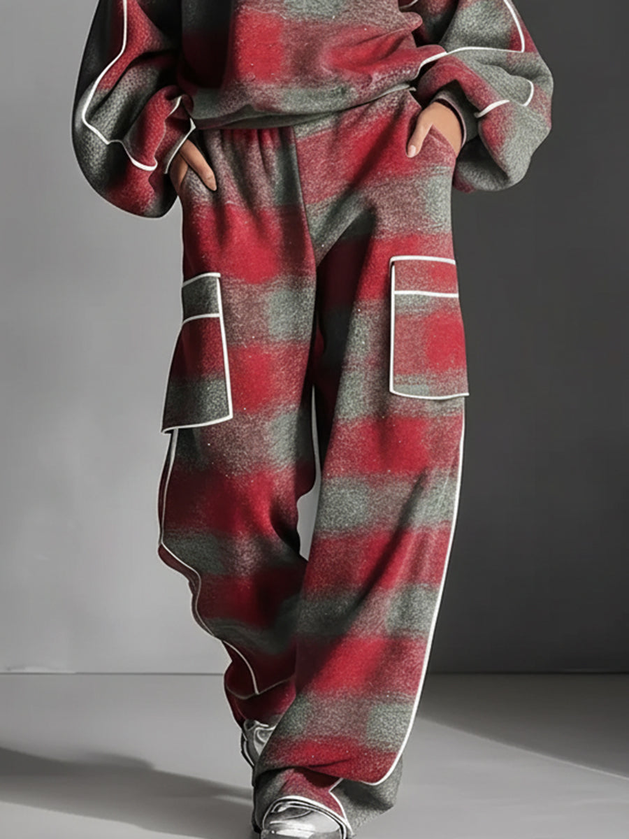 Loose Wide Leg Contrast Color Line Split-Joint Striped Pants