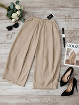 Loose Wide Leg Pleated Pockets Solid Color Pants