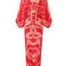 Original Batwing Sleeves Long Sleeves Contrast Color Printed Pleated V-Neck Midi Dresses