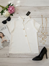 Short Sleeves Buttoned Solid Color Lapel Blouses&Shirts Tops