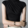 Skinny Pleated Solid Color Mock Neck T-Shirts Tops