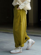 Vintage Corduroy Wide Leg Loose Solid Color Pants