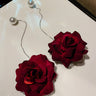 Vintage Red Rose Floral Pearl Earrings Accessories