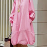 Long Sleeves Loose Buttoned Pleated Pockets Solid Color Lapel Midi Dresses