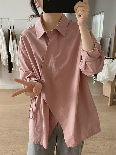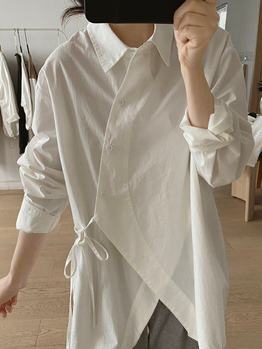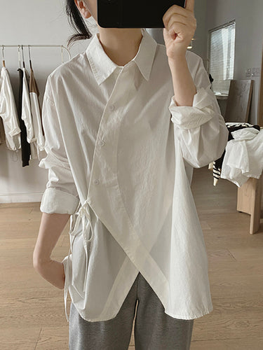 Recorte irregular de mangas compridas Lace-up Solid Color Lapeel Bloups