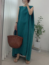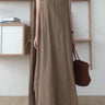 Vestido midi de pescoço redondo de coloração sólido simples de cor sólida casual