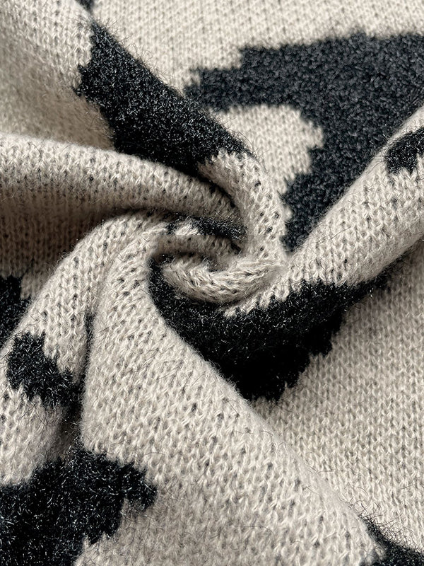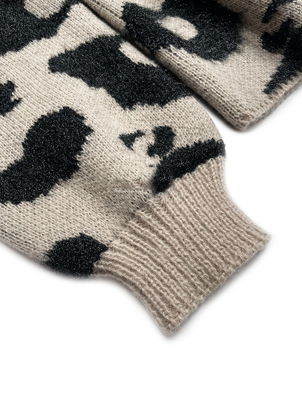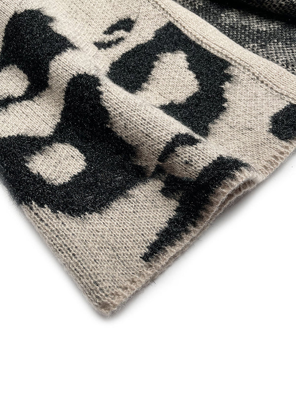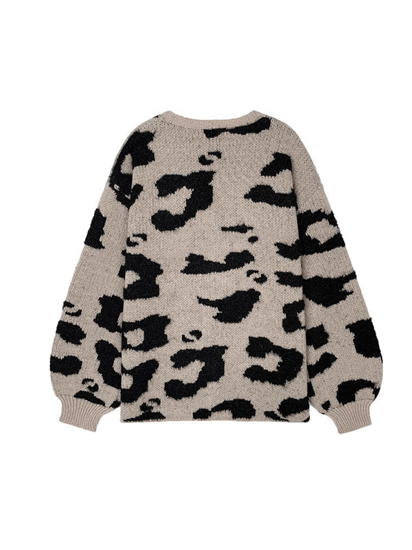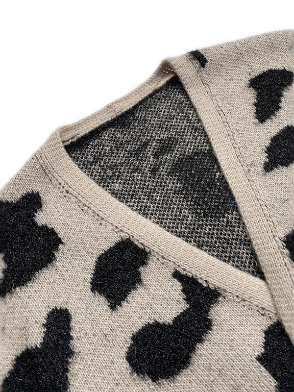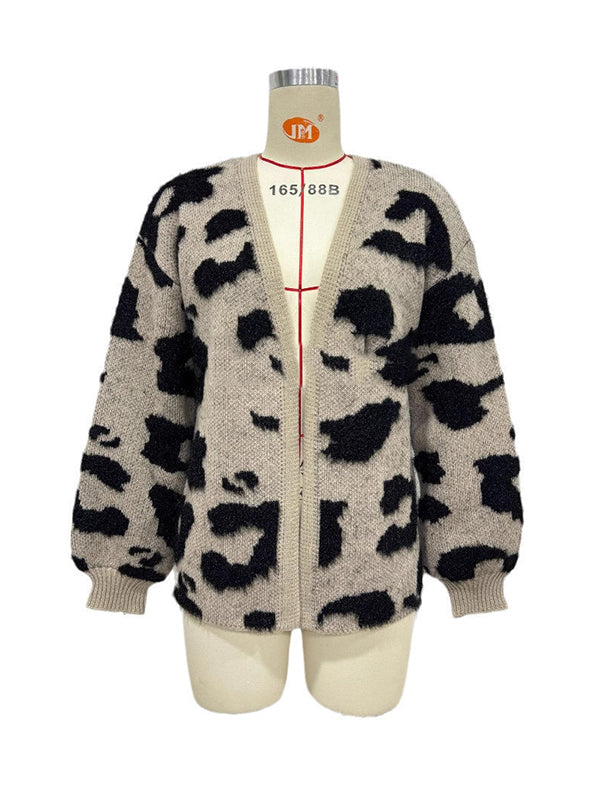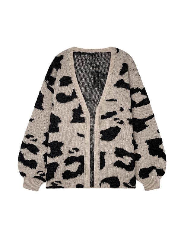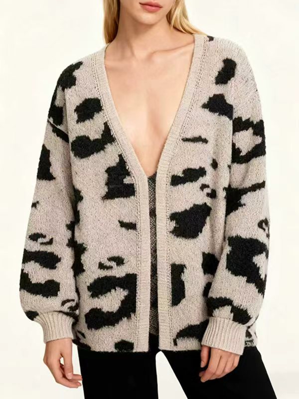 Long Sleeves Loose Contrast Color Leopard Print Cardigan Tops