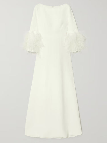 Vestido de festa de manga longa e elegante e de manga longa em preto e branco