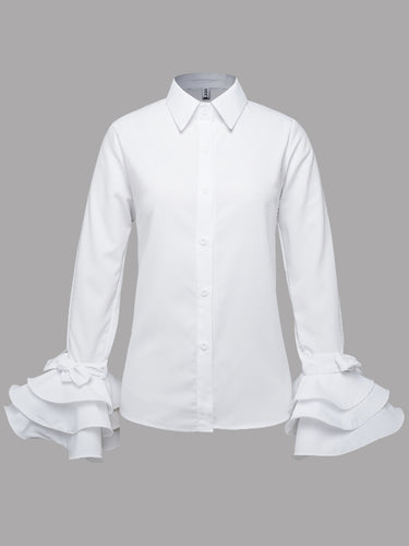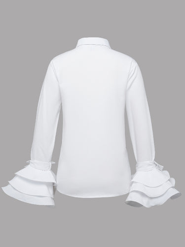 Mangas largas Falbela Bloups e camisas de lapiga de cor sólidas e camisas