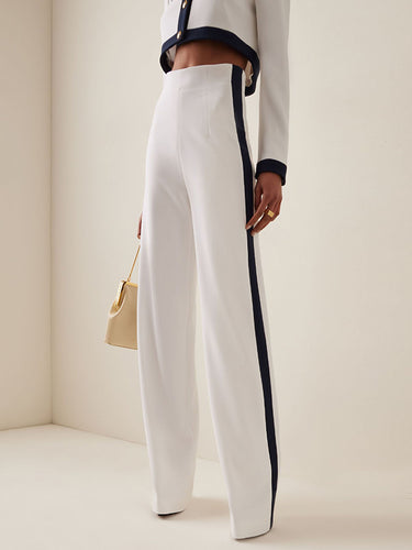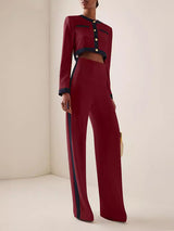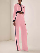 Mangas compridas abotoadas blusas de pescoço redondo tampas + calças de cintura alta