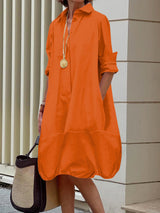 Mangas compridas colorir solto colar colarinho midi vestidos de camisa vestido de camisa