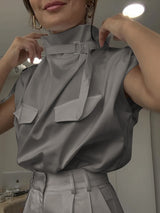 Meet your new wardrobe essential—this sleek sleeveless shirt is the perfect blend of polished professionalism and effortless urban cool. Designed for the modern woman on-the-go, its clean lines and solid-color sophistication make it endlessly versatile for both work and weekend wear.