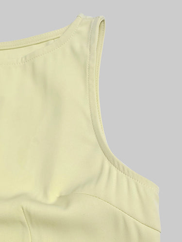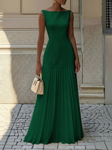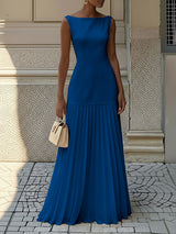 Manga sem mangas Gaze plissado de cor sólida, vestidos de barco de junho