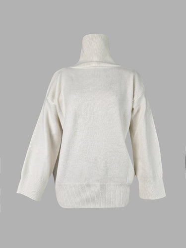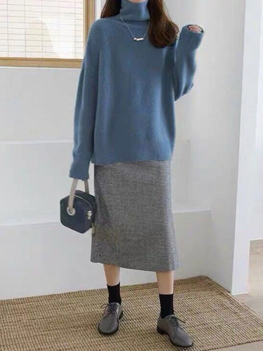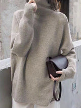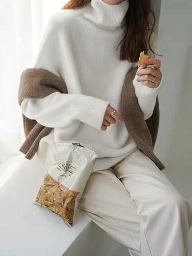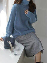 Mangas compridas soltas casuais de cor macio de suéter de pescoço alto