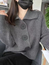 Mangas compridas soltas de lapela de lapela de junta dividida solto Tops