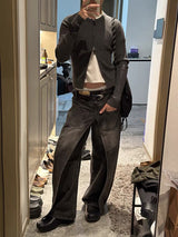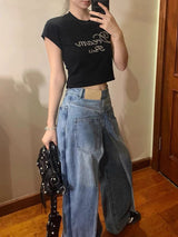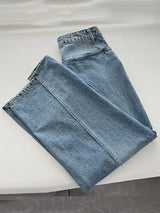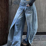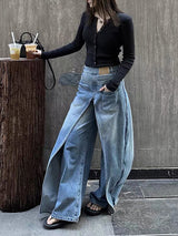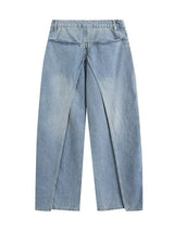 Falso dois bolsos de perna larga reversível calças jeans de fundo
