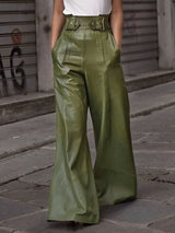 Step into effortless style with our High Waisted Loose Pleated PU Pants, the perfect fusion of modern edge and timeless sophistication. Designed with a flattering high-rise waist, these trousers create a sleek silhouette while offering a relaxed, comfortable fit. The unique split-joint PU fabric gives these pants a contemporary, luxe feel, while the elegant pleats add structure and dimension. With deep, functional pockets, they seamlessly blend practicality and fashion.