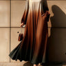 A-Line Long Sleeves Elasticity Gradient Pockets Round-Neck Maxi Dresses