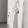 High Waisted Long Sleeves Gauze Pleated Solid Color Split-Joint Round-Neck Maxi Dresses
