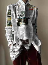 Mangas compridas letra solta estampa de colarinho de colarinho e camisas