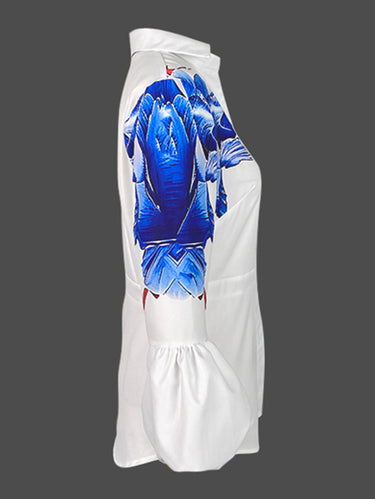 Mangas de sopa de sopa de sopa de sopa de impressão floral abotoada camisetas de lapela de junta dividida