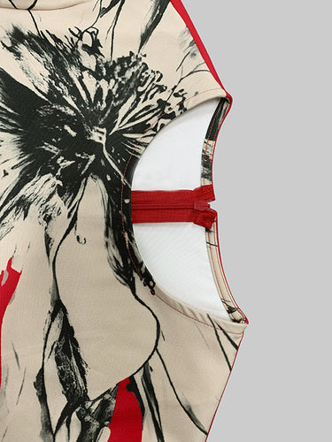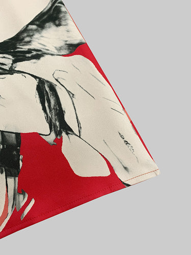 Mangas soltas de três quartos contraste colorido estampa de flor redonda vestidos midi