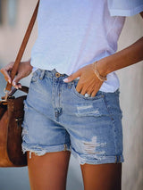 Shorts de jeans de articulação split de articulação solta e vazia