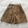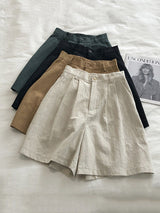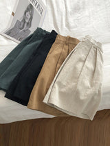 Elasticidade larga de perna larga shorts de cor sólida plissada