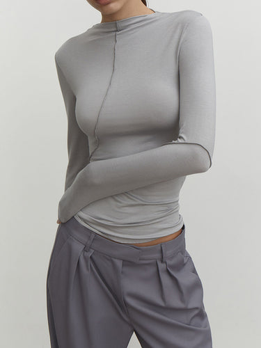 Mangas compridas Tops de coloração sólida de cor sólida de cor sólida