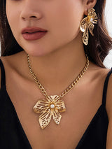 Correntes formas de flor Hollo Plazado três peças Colar delicado + Brincos Acessórios