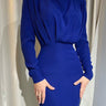 Mangas compridas de cintura alta vestidos midi de coloração sólida de cor plissada