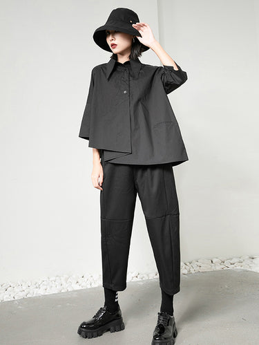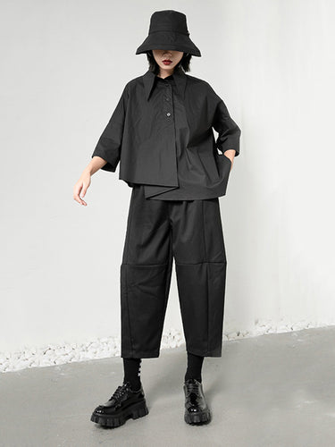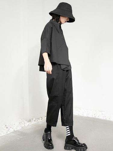 Lazer moda de irregularidade solta coloração sólida blusas camisetas tops