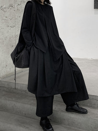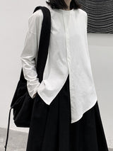 Mangas compridas soltas assimétricas de cor sólida de cor split-split-alcaça de ponta redonda camisetas de pescoço redondo