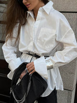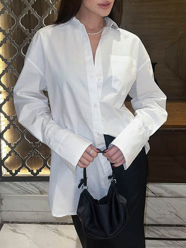 Mangas compridas bolsos abotoados blusas colorido sólido camisetas tops
