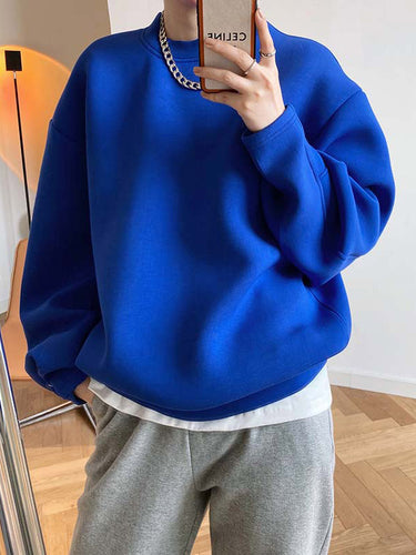 Mangas compridas tops de moletom redondos de coloração sólida solta de cor sólida